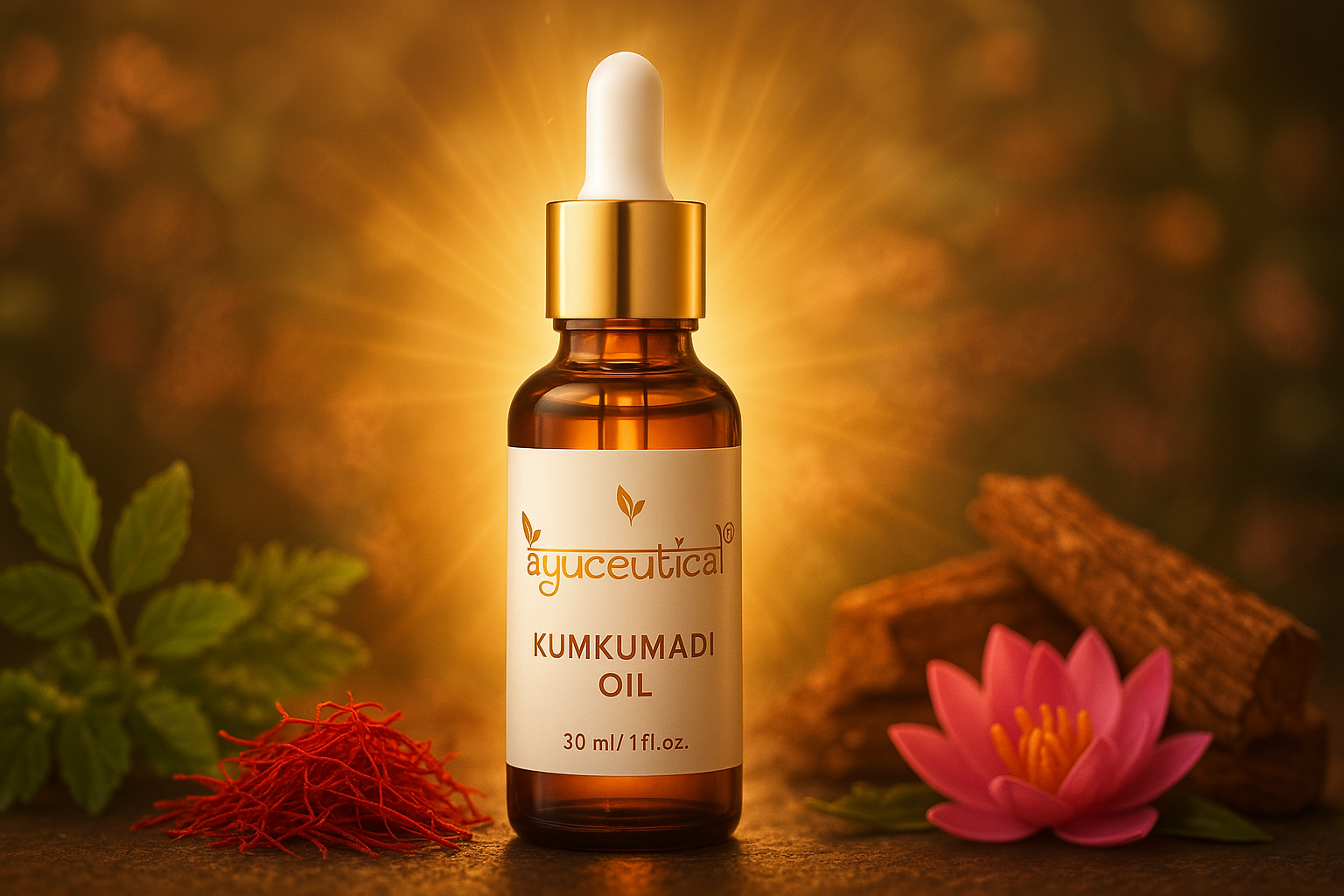 Ancient Ayurvedic Radiance Oil for Glowing, Youthful Skin. A luxurious blend of rare herbs, pure saffron, and precious botanicals.