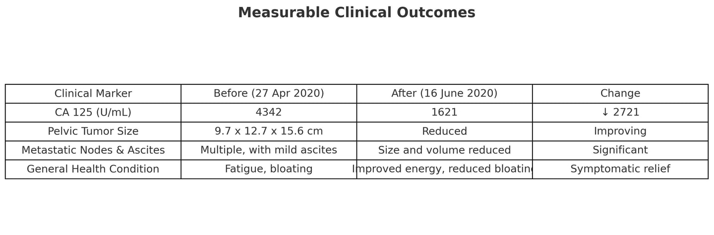The multi-pronged action of the herbs used—targeting inflammation, cellular recovery, and tumor modulation—played a key role in stabilizing the disease progression.